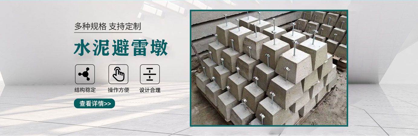 宏印水泥避雷墩廠是一家專業從事防雷工程設計與施工的企業。 多年來,隨著公司業務持續健康的發展、技術實力不斷增強、專業人才不斷積累和素質極大提高,使企業發展至今成為省內為數不多內部架構合理完善的防雷企業。 施工部:本公司專業防雷施工隊伍,承接各種大小防雷工程施工,包括: 防雷工程: 避雷針支架水泥墩銷售,規格齊全,也可定做。 新建建筑物防直擊雷、舊建筑物防直擊雷整改、機房防雷工程、智能小區監控系統防雷、程控交換機綜合防雷、電力變電站接地工程、通信防雷及接地 ,防雷咨詢、專業培訓、技術解答、專業建議;防雷工程報建及驗收;防雷工程雷擊故障修復;防雷工程維護和保養等。提供檢測在線運行中防雷產品合格指標的專業測試服務。 不斷的學習是追求進步和積蓄能力的渠道;重視競爭,競爭促進了企業的進步和發展;重視業績,業績是企業生存和發展的關鍵;企業、員工和客戶是一個共同體,共同的進步是我們共同追求的目標 。...